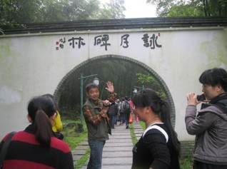 在明月廣場合完影后,大家一同欣賞著云姑沐月的唯美雕像。入景區的大門前擺放著各式叫賣的工藝品,無論大人與小孩都在停步觀賞,素不知還有更重要的事情在等待著我們。入大門整隊買票可不是件簡單的事情,由于今日天氣好,踏春的人比較多。整個團隊一同穿過詠月碑林時,大家都在嘆為觀止,因為,在無數的碑文上記載著先人與后人對于明月山的敬仰。在朱熹涼亭前,大家商議,如何踏上明月山。因來的人群中有中寧幼小的子民,考慮再三,分兵兩路。幼童坐纜車上去,徐聰為小分隊隊長;其他成年人等,徒步上山,蔡文斌為先鋒官,胡董為隊長。在目視小分隊踏上纜車的小途時,我們也開始了今天的艱巨任務,完成踏上明月山的中寧夢想。