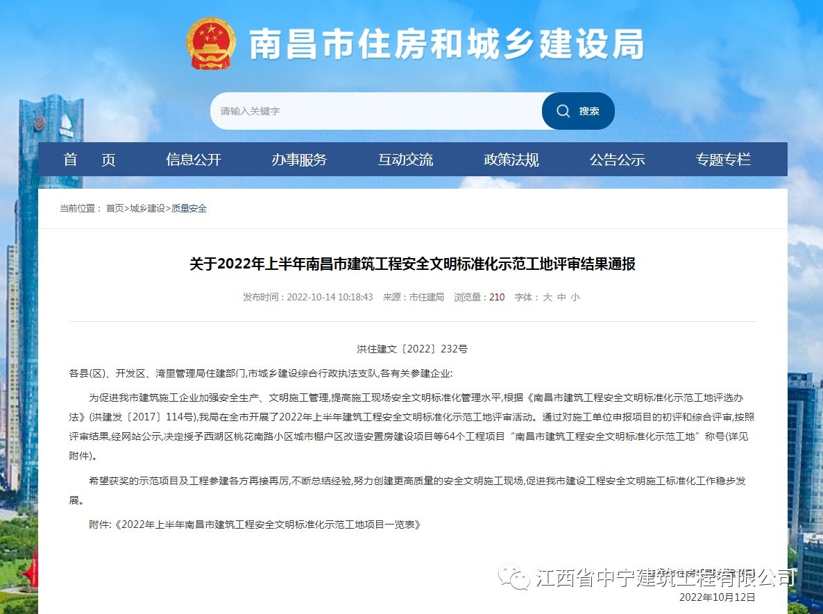 近日,南昌市住房和城鄉(xiāng)建設(shè)局發(fā)布了公告,江西省中寧建筑工程有限公司承接的從鑫大廈項(xiàng)目取得南昌市建筑工程安全文明標(biāo)準(zhǔn)化示范工地。
